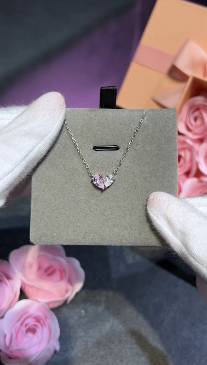 Seçkin Pembe Kuvars Taş İşçiliği: Kolye üzerinde konumlandırılan pembe taşlar, ışığı optimal düzeyde kırarak dikkat çekici ancak zarif bir ışıltı yayar.